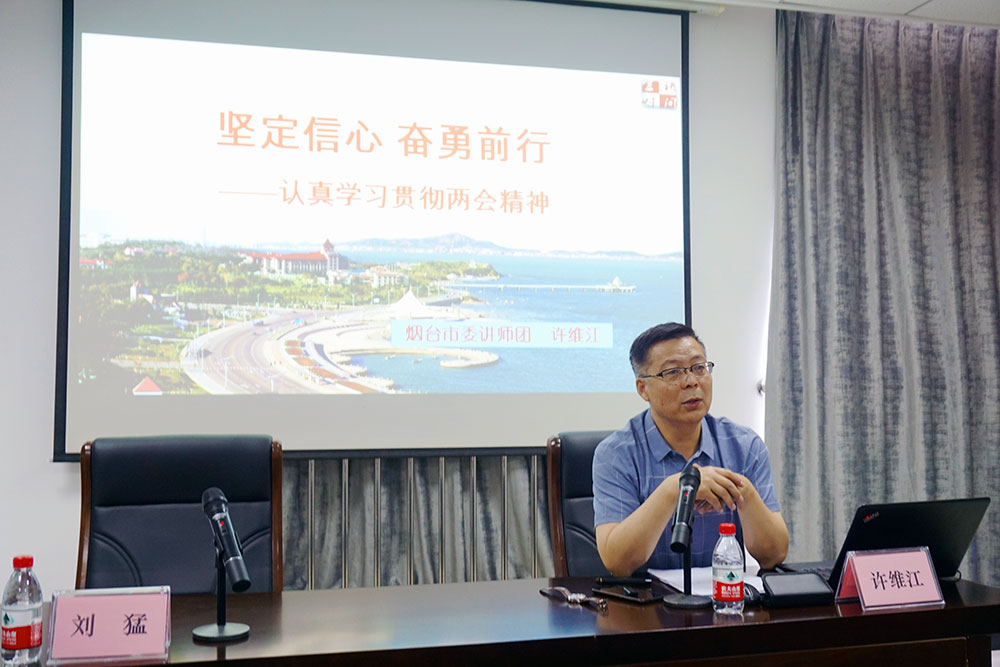 本次活动分为两个阶段进行。第一阶段许维江团长以《坚定信心奋勇前行》——认真学习贯彻全国两会精神为题,从“主要背景”“精髓要义”“贯彻落实”导入,从人民至上、勇于斗争、推进治理、传承精神四个方面进行了详细阐述,激励广大党员继承和发扬党的光荣传统,不忘初心跟党走,牢记使命勇担当。