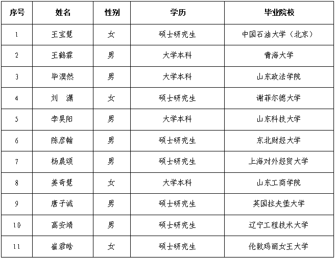 拟录用人员信息(按姓氏笔画排列):